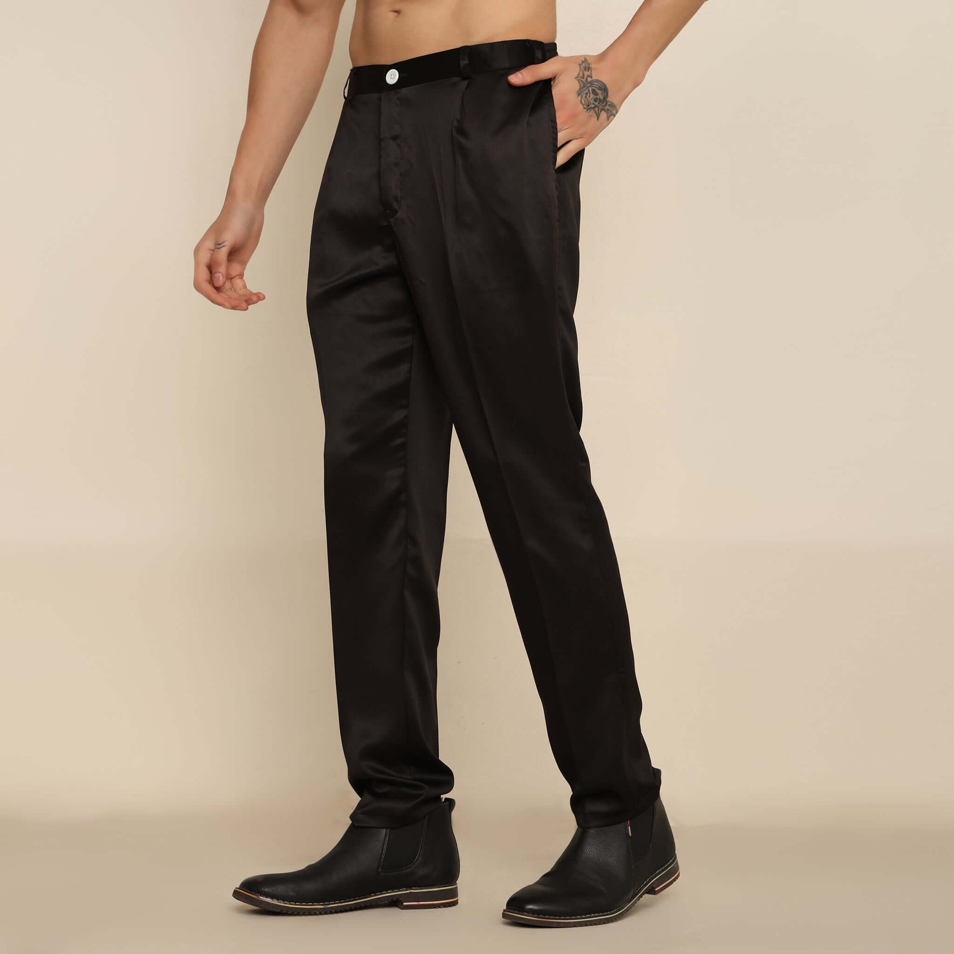 Black Sequence Chikan Embroiderd Kurta Koti Set: This men's black satin kurta set features a stunning koti adorned with delicate chikankari embroidery and shimmering sequin details. The full-sleeve kurta and matching koti showcase premium satin fabric, paired with coordinating pants. The refined blend of traditional chikankari with sequin work creates a luxurious silhouette while ensuring comfort throughout wear.