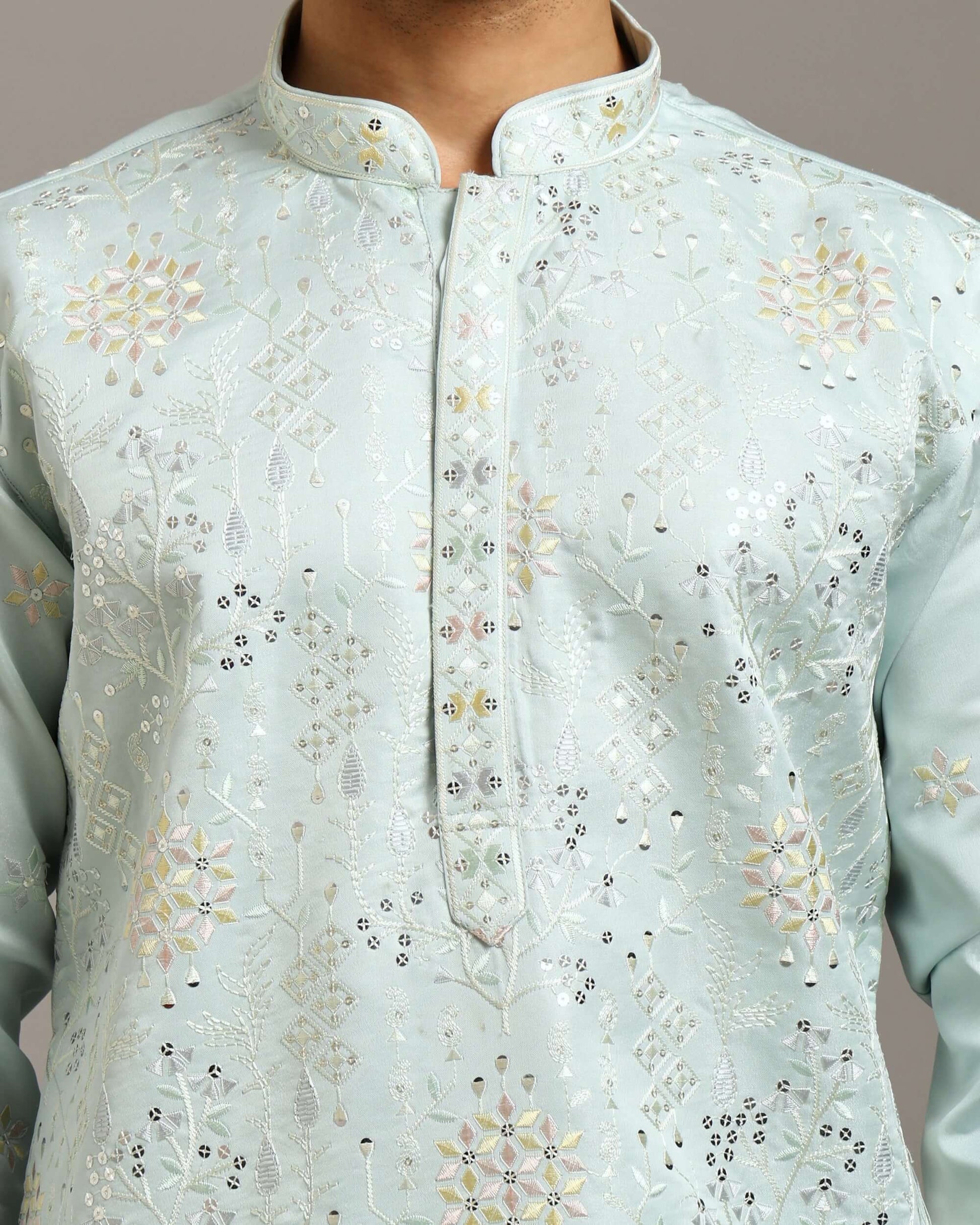 Ira Floral Embroidery Wedding Sky Blue Kurta for Men