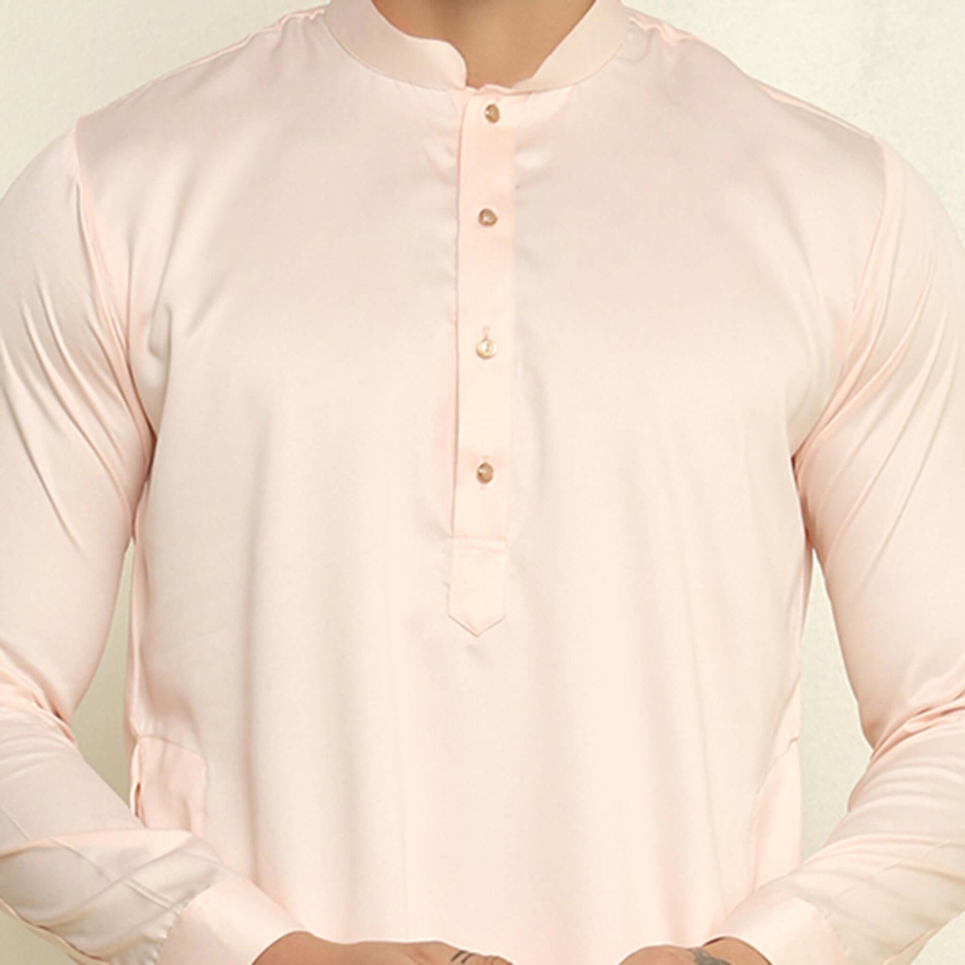Pink Sequence Embroidered Kurta Koti Set for Men: This men's pink satin kurta set presents a luxurious koti adorned with intricate embroidery and shimmering sequin work. The full-sleeve kurta and designer koti are crafted in premium satin fabric, complemented by matching pants. The detailed sequin placement and embroidery patterns create a striking visual appeal.